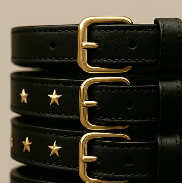 Eine Hommage an Salzburgs klare Eleganz und seine glitzernden Nächte.Das Salzburg Chic Collar wurde als stilvolle Erweiterung unserer ersten Boutique in der Getreidegasse entworfen. Inspiriert von der barocken Architektur, den goldenen Details der Altstadt und dem besonderen Licht, das abends über Salzburg liegt, verbindet dieses Halsband zeitlose Zurückhaltung mit einem subtilen Statement.Gefertigt aus fein genarbtem Premiumleder und veredelt mit handgesetzten goldenen Sternstuds, entsteht ein Design, das zugleich klassisch und außergewöhnlich ist. Die sanft schimmernden Sterne setzen elegante Akzente, ohne aufdringlich zu wirken – ein Accessoire, das jedem Hund einen Hauch von Raffinesse verleiht.Das Leder ist weich, langlebig und entwickelt mit der Zeit einen charakteristischen Look. Die hochwertigen, glänzend goldenen Beschläge runden das harmonische Gesamtbild ab und sorgen für eine sichere, komfortable Passform.Ob bei einem Spaziergang an der Salzach, einem Besuch in den traditionellen Kaffeehäusern oder einem Ausflug ins Umland – das Salzburg Chic Collar fügt sich nahtlos in jeden stilvollen Moment ein.